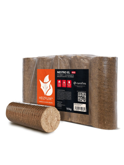 Heizfuxx Nestro XL Red 10kg x 96 Gebinde 960 kg Palette. Die Nestro XL Red Hartholzbriketts sind hochwertige Brennstoffe für effizientes und umweltfreundliches heizen. Hergestellt aus gepresster Hartholzspäne bieten sie eine lange Brenndauer und gleichmäßige Wärmeabgabe. Sie sind CO?-neutral und eine ideale Alternative zu fossilen Brennstoffen. Die Briketts sind leicht zu lagern und zu handhaben, was sie zu einer praktischen Wahl für Heimheizungen macht. Ideal für Kamine, Öfen und Heizkessel.